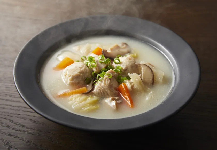 ■鶏の旨みが溶け込んだ白湯スープ、「博多水炊きスープ」