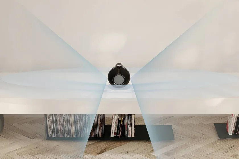 4基のマイクと内蔵インテリジェンス機能が使用されており、デビアレ マニアはオーディオ・レンダリングを自動的に周囲の環境に適応させることができます。デビアレ マニアを部屋の中央に置くと、360度ステレオモードが自動的に起動します。壁の付近に置いた場合は、背面の2基のフルレンジスピーカーが作動して正面のスピーカー2基をシームレスに補強し、開放的な力強いサウンドステージを創り出しながら、究極のポータブル・リスニング体験をもたらします。