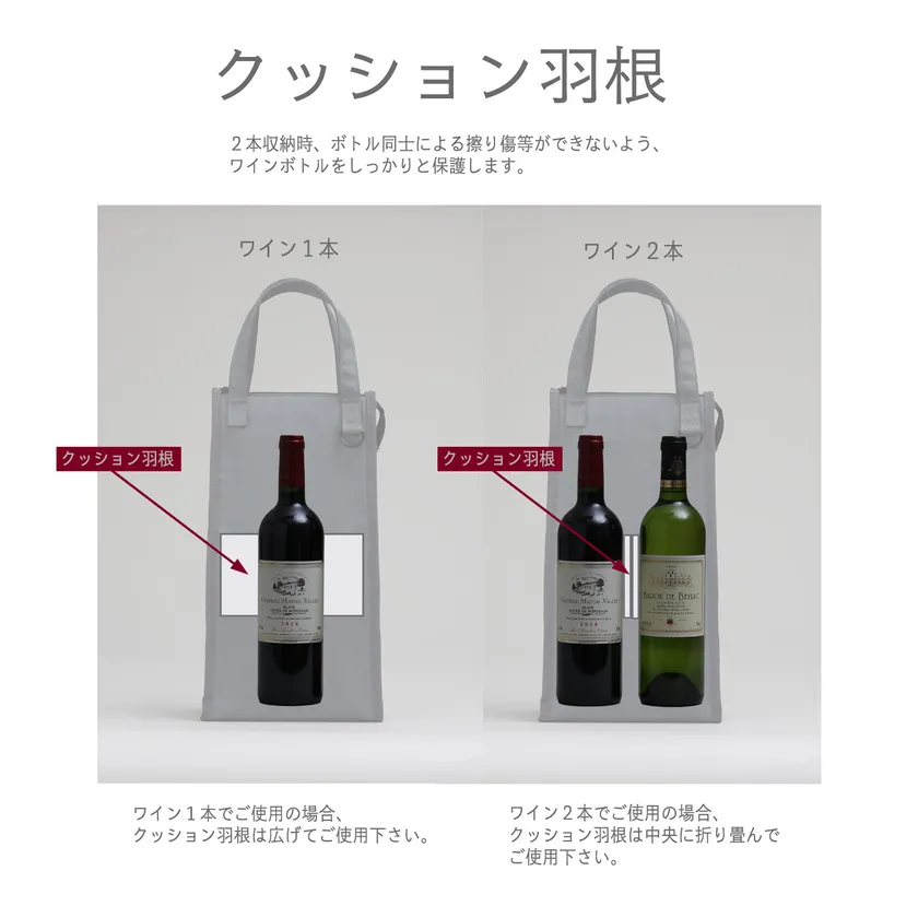 2本入れる際はクッション羽根が2本のワインボトルを保護いたします。