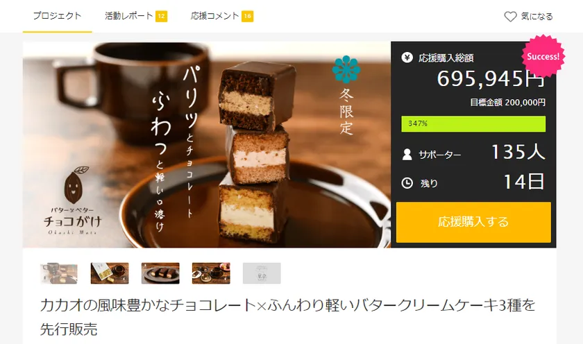 Makuake『バターとベターチョコがけ』先行予約ページ