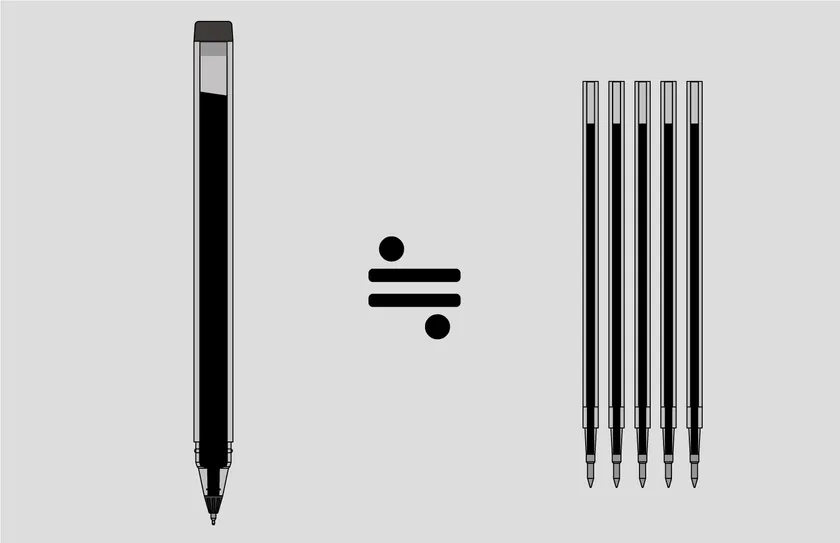 軸本体が全てインクタンクになっており、当社従来品ゲルペンの約5倍の筆記が可能です。インクがたっぷり入っているので、使い切ったときの達成感が得られます。
