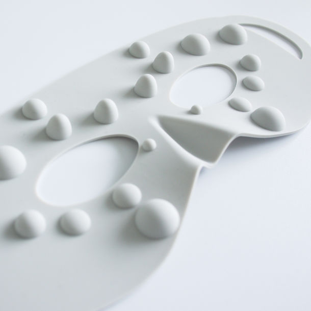 シリコーンゴムで出来たアイマスクです。突起が付いており、目元のツボを刺激します。やさしく指圧をかけてください。汚れたら水洗いも可能です。