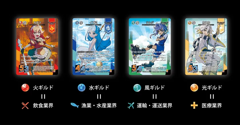 他のトレーディングカードゲームのように駆け引き・戦略性を楽しめる「本格トレカ」でありながら「職業に触れるきっかけになる」点が最大の特徴。カードの属性=「ギルド」がそれぞれ実際の職業をモチーフにデザインされているため、遊びながら仕事や産業を考えるきっかけを作ります。
