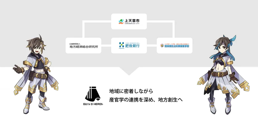 このイノベーター育成プログラムは、ギルドヒーローズ社と地方経済総合研究所 及び 肥後銀行の連携によって熊本県・上天草市へ共同提案されました。