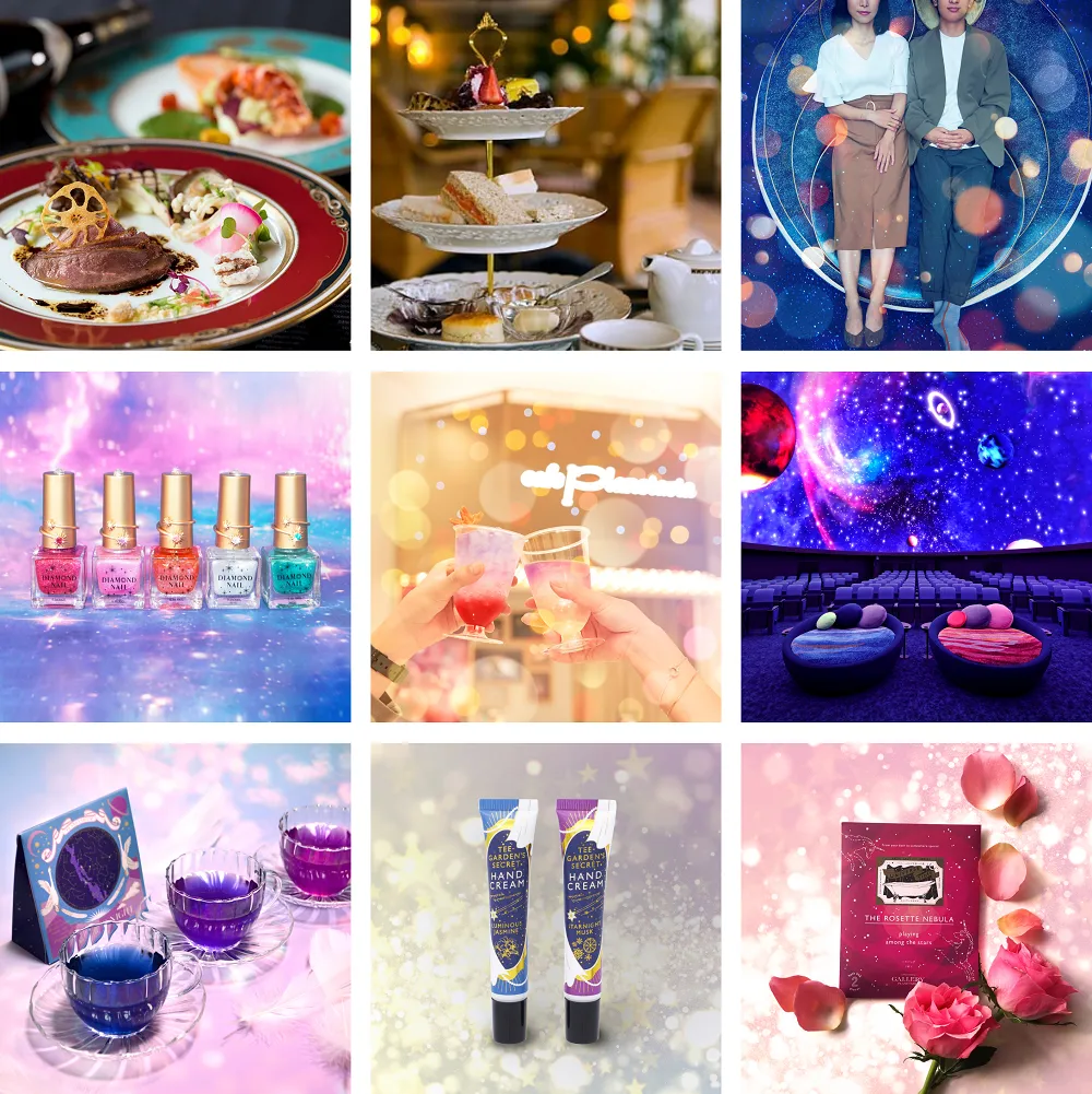 美しい星空とアロマの香りに癒されたり、まるでその場にいるような臨場感で旅行気分を味わったり、宇宙や月に行ったような写真を残したり。さまざまな星や宇宙の魅力に出会えるプラネタリウム作品。