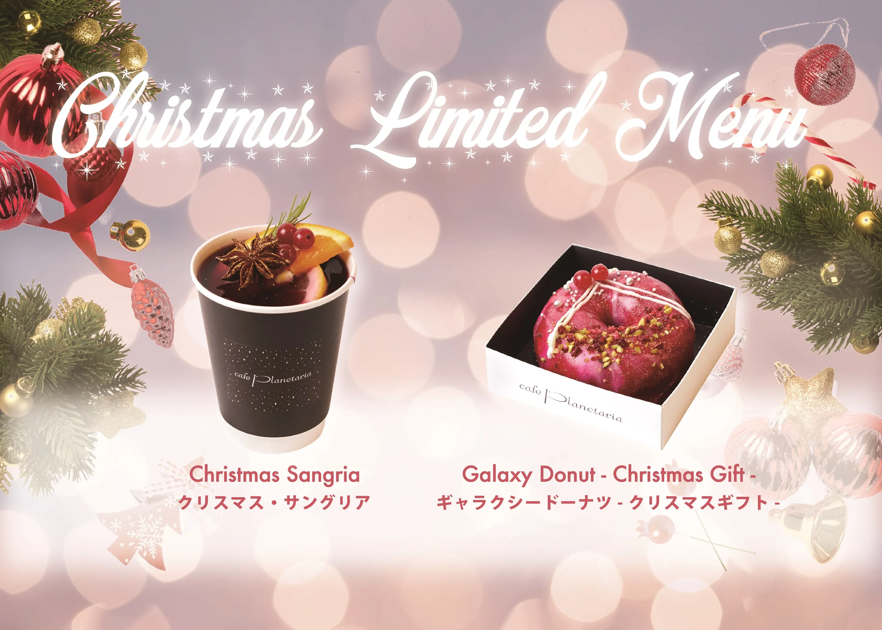 さらにプラネタリアTOKYO(有楽町)とプラネタリアYOKOHAMA(横浜)では12月2日(金)~12月25日(日)の期間、豪華賞品が当たるクリスマス抽選会や華やかなクリスマス限定メニューの販売を実施します。
