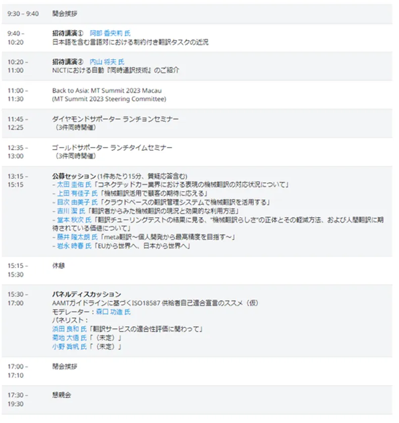 本イベントでは、講演の他、懇親会の実施。さらに機械翻訳に関する企業展示を併設いたします。