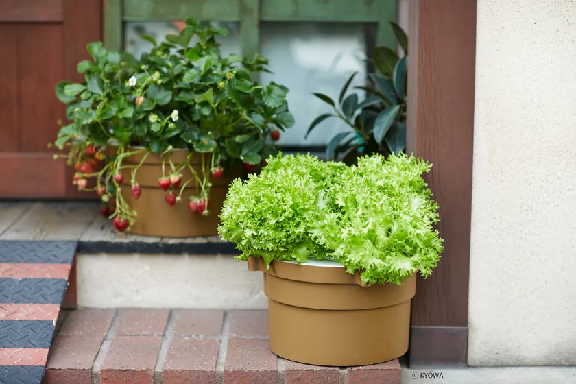 従来はトマトのような果菜を育てるシステムでしたが、改良された製品はレタスのような葉菜も栽培できる定植パネルを付属し、果菜でも葉菜でも栽培することができ、植物の種類が飛躍的に増えました。また、春から夏はトマト栽培、秋から冬はレタス栽培など年中栽培がお楽しみいただけます。
