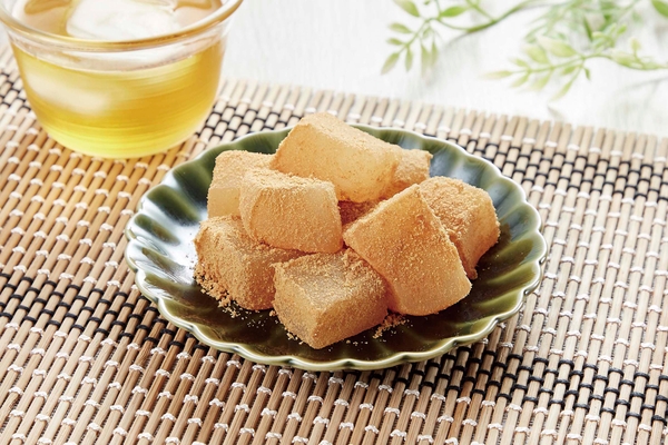 品質にこだわった国産きなこを使用。強めに焙煎することで、より香ばしく風味の強いきなこに仕上げています。“ぷるもち”食感のわらび餅ときなこの相性もばっちりで、食べる直前に冷やしてからお召し上がりいただくのがおすすめです。