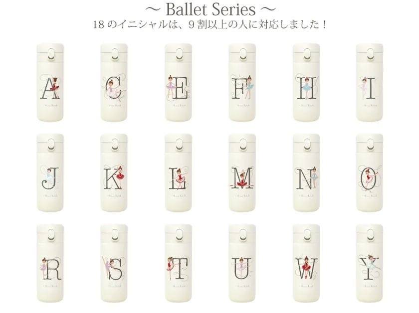 「あなたのイニシャルあったよ!」 Shinzi Katohが描く、 18種のイニシャル・バレエ柄のステンレスボトル発売開始!