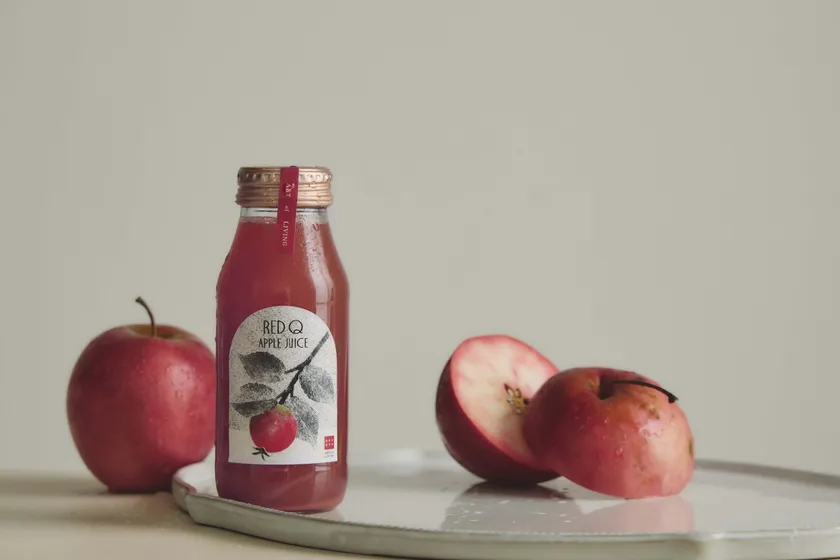 青森県五所川原市で生まれた生産量がごくわずかの「レッドキュー」。「ポリフェノール」と「アントシアニン」が豊富です。地元でもほとんど見かけない希少な果実を、樹上で完熟させ、そのまま搾汁しました。味はほんのりベリー風味を感じられるルビー色のりんごジュースです。