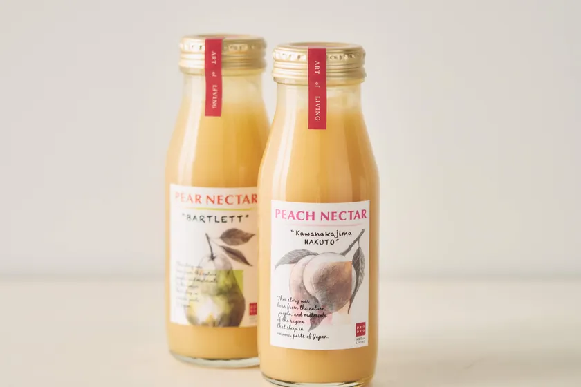 短い収穫期に産地では出荷しきれない果実が追熟し、食べ頃の果物が廃棄されてしまう現実があります。「ひとつひとつ」では、農家の声から完熟した桃と洋梨の素材を味わえるネクターを開発しました。傷んだ部分を全て手作業で丁寧に取り除いて、栄養価の高い皮も含め、やわらかい完熟果実をすり潰し、ネクターに仕上げました。