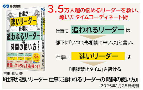 【3.5万人超の悩めるリーダーを救い、導いたタイムコーディネート術】吉田 幸弘 著『仕事が速いリーダー 仕事に追われるリーダーの 時間の使い方』2025年1月28日刊行