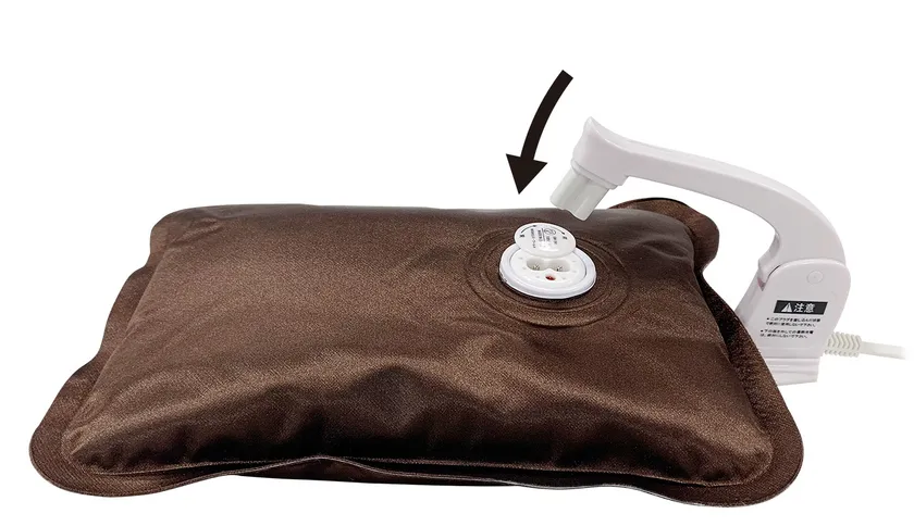 付属のアダプターを用いて約10分で蓄熱、その後、専用クッションの収納ポケットに湯たんぽを入れてお使いいただけます。