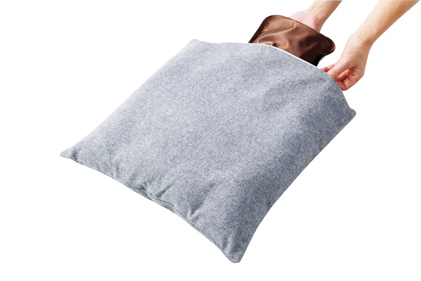 ・クッションの収納用ポケットに湯たんぽを入れるだけで簡単にお使いいただけます