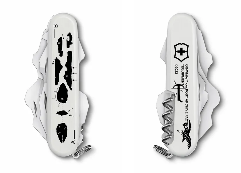Off-White(TM)がビクトリノックスにコラボレーションを呼びかけ、Post Archive Faction(PAF)との提携による「Equipment(TM)」プロジェクトの中心アイテムとして、この特別なリミテッドエディション マルチツールをつくることになりました。PAFは、イム・ドンジュンとチョン・スーキョが2018年に立ち上げた韓国のメンズウェアのブランドです。
