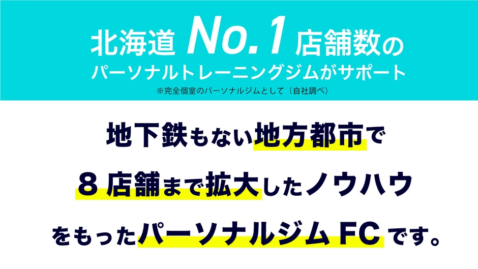 パーソナルトレーナーとして独立する。あなたの夢を一緒に叶えましょう。北海道8位店舗の実績で出店可能。