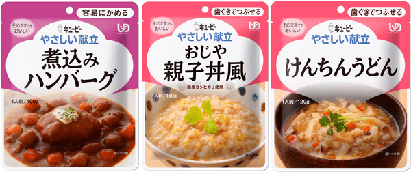キユーピー株式会社(本社:東京都渋谷区、代表取締役 社長執行役員:長南 収、以下キユーピー)は、市販用介護食「やさしい献立」シリーズのUDF区分※“容易にかめる”から「煮込みハンバーグ」、“歯ぐきでつぶせる”から「おじや 親子丼風」「けんちんうどん」の食塩相当量を、100g当たり1.0g以下にリニューアルします。