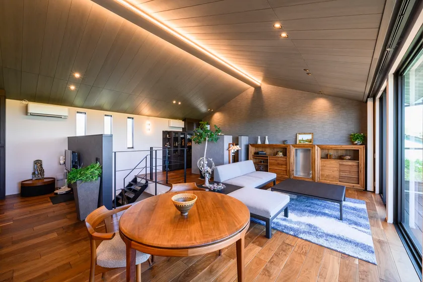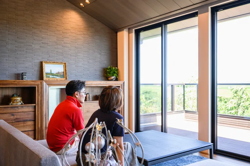勾配屋根の2階リビングで寛ぐSさんご夫妻
