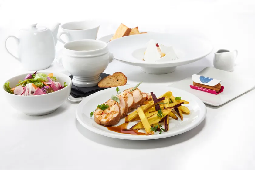 10月に日本上陸50年を迎えたフォションと11月に日本就航70周年を迎えたエールフランス航空。フランス企業同士であり、協業の縁も深い両社にとって記念すべきアニバーサリーイヤーのこのタイミングを祝して、スペシャルコラボレーションウインターメニューを2週間限定でご用意いたします。フランスでお馴染みの冬の料理をフォションとエールフランス航空のコラボレーションらしくエスプリをきかせてプリフィックスコースに仕立てました。