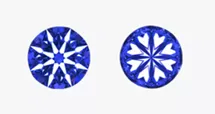 アイプリモのダイヤモンドを専用の拡大スコープで覗くと、上からは弓矢、下からはふっくらとした美しいハートの模様が見てとれます。内部に取り込んだ光が美しく跳ね返ることによって生まれる「ハート&キューピッド」は、ダイヤモンドの輝きを最大限に引き出すカットが施されていることの証。