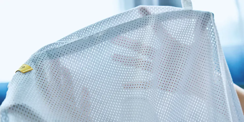 素材はスポーツウェアによく使われる機能性の高い速乾メッシュ生地を採用。石鹸の泡切れもよいうえ、早く乾き衛生的に使えます。簡単に折りたたむことができ、コンパクトになるので場所をとりません。
