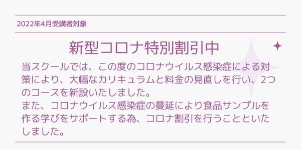 2022年コロナウイルス感染症の対策の為、カリキュラムを見直し、2つのコースを新設いたしました!