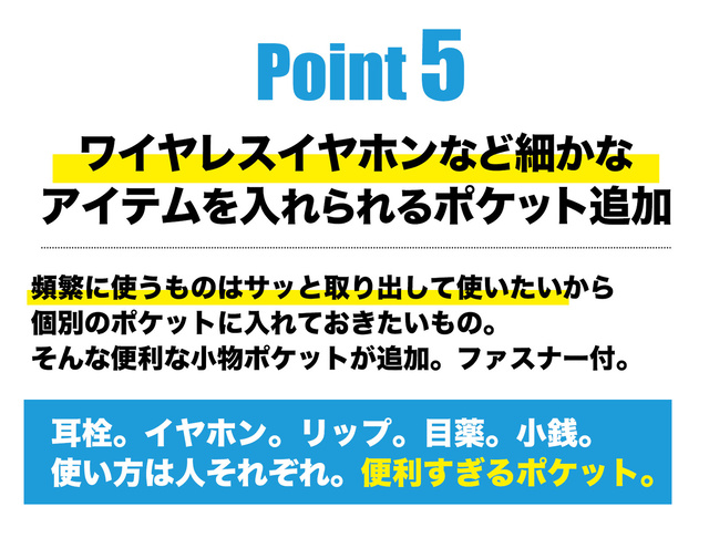 3:全ての貴重品が収納可能で搭乗時は脱ぐだけで完結。