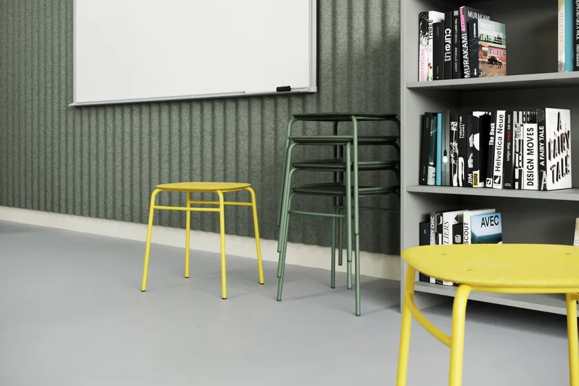 シートハイは3種類ありいずれも8脚スタックすることができ、オフィスや教育施設、クリニックなどのコントラクト空間から住居まで、幅広い用途に対応します。