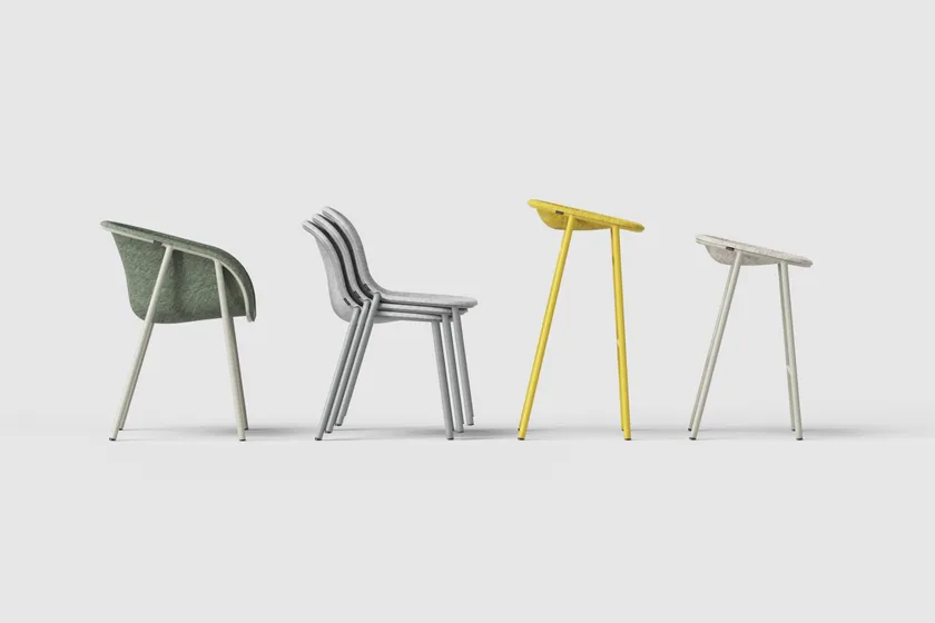 2005年にオランダで設立したデフォルムは、リサイクルペットボトルから作られるペットフェルトを使用し、デザイン・製造の各工程において廃棄物を最低限に抑えるべく、常に環境思考と経済的改善の両立を見据える家具メーカーです。