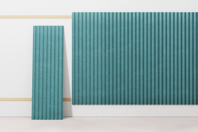 オフィスデザインに欠かせない要素になりつつある吸音対策。Mute Flowパネルは、波形にすることで面積を増やし、吸音効果を上げています。取り付けの簡単さも魅力。