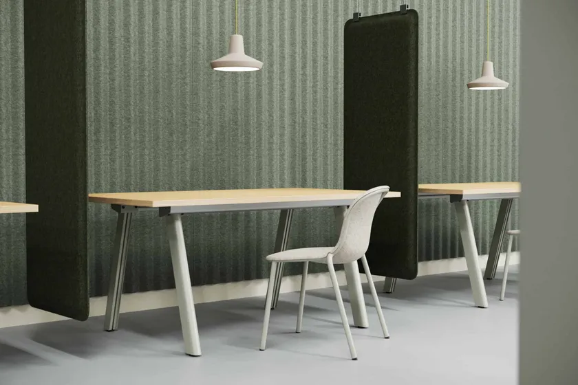 ワークプレイスで完全に孤立することなくプライバシー確保ができる機能的なディバイダ―。吸音効果があり、取り付けも簡単なため、オフィスやコワーキングスペースに最適です。