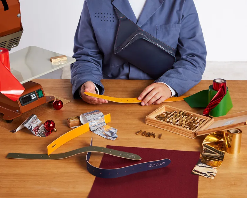 職人の手によって施されるイニシャル刻印は、カミーユ・フォルネの作品をあなただけの物へと変えることができます。期間中、8色から選べるカラーイニシャル刻印サービスを、銀座本店・大阪店、百貨店コーナーにて、レザーグッズご購入で刻印サービスを無料にて承ります。