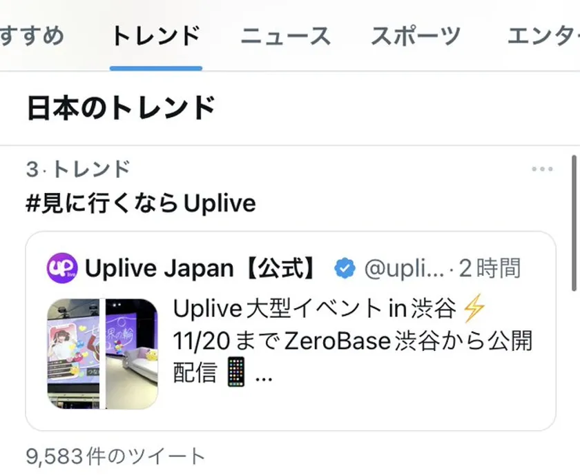 11月16日~11月20日、ライブ配信アプリ「Uplive」が開催した 入場料無料のイベントが『Twitter日本トレンド』で話題に!