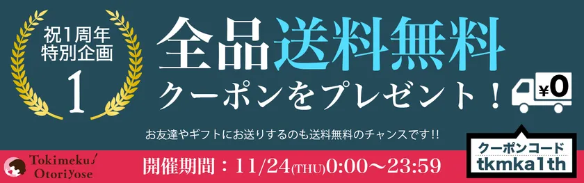 11月24日限定!!クーポンのご利用(※1)で全品送料を無料にします。時間内であれば、何度でも利用可能です。ご自宅用はもちろん、ギフトとして送りたい方も、この機会をぜひご利用ください。