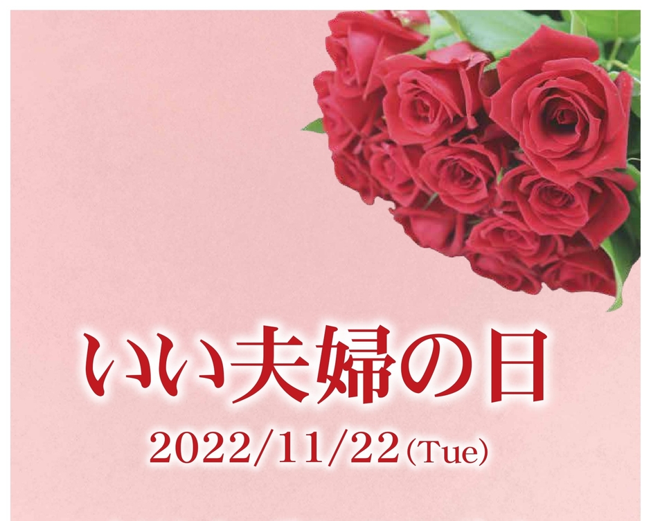 1988年に財団法人余暇開発センターが、夫婦で余暇を楽しむライフスタイルを提唱したのをきっかけに、「いい夫婦の日」をすすめる会が、日本中の夫婦やカップルに”ふたりの時間”を大切にし、いっそう素敵な関係を築いていただきたいという想いから、11月22日を「いい夫婦の日」と制定しました。