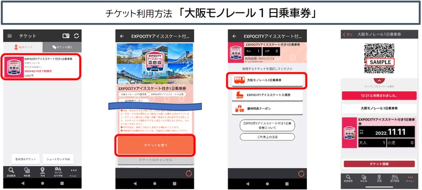 なお、大阪モノレール「EXPOCITYアイススケートリンク付き1日乗車券」には、ジョルダンが日本での総代理店契約をしている英国Masabi社のモバイルチケッティングサービス「Justride」(ジャストライド)の技術が採用され、この技術を使ったモバイルチケットとなります。