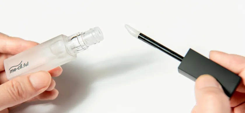 チップを取り出し朝と夜、上まつ毛・下まつ毛の根元に優しく塗り込みます。