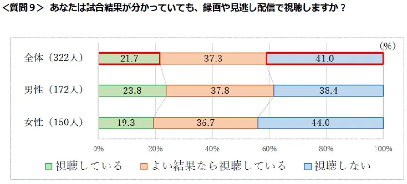 <質問9>あなたは試合結果が分かっていても、録画や見逃し配信で視聴しますか?