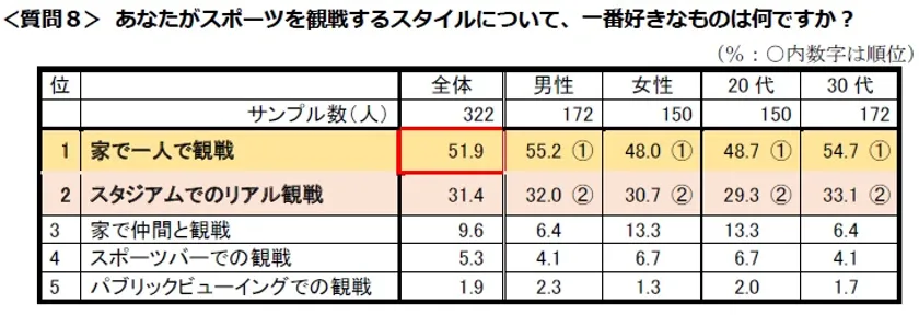◆スポーツ観戦は「家でひとりで観戦」が過半数。「リアル観戦」は3割