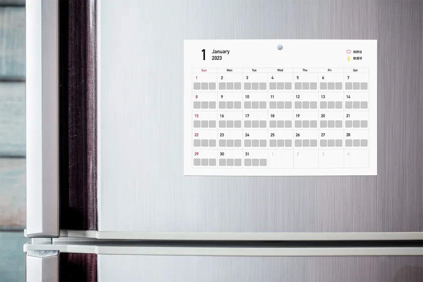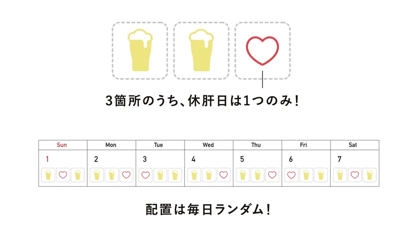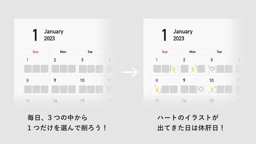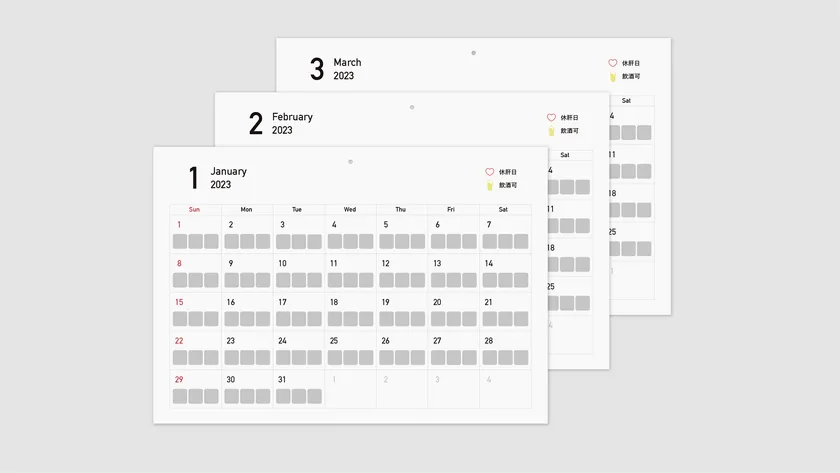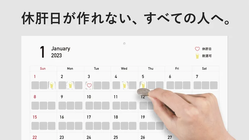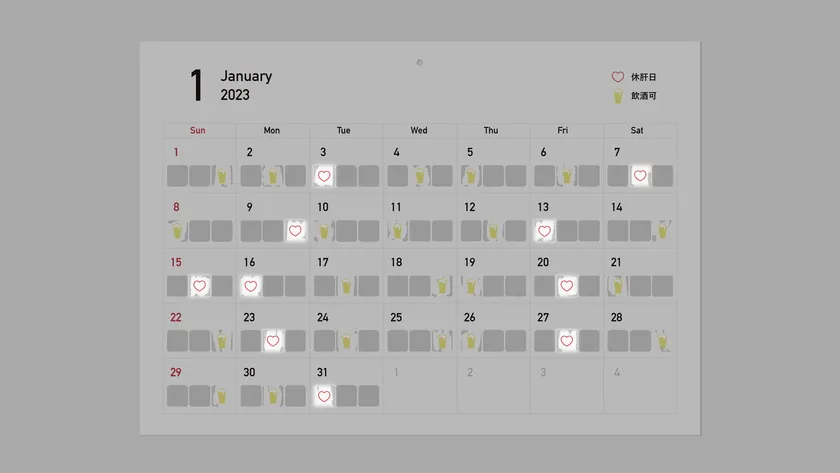 「休肝日が大事なのは分かってる、、でも毎日飲んじゃう!」という人向けに、お酒好きの企画者が本気で開発した休肝日カレンダーです。