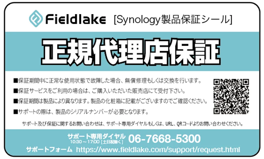 ※Fieldlake代理店取り扱い製品が対象となります。目印は以下のシールとなります。