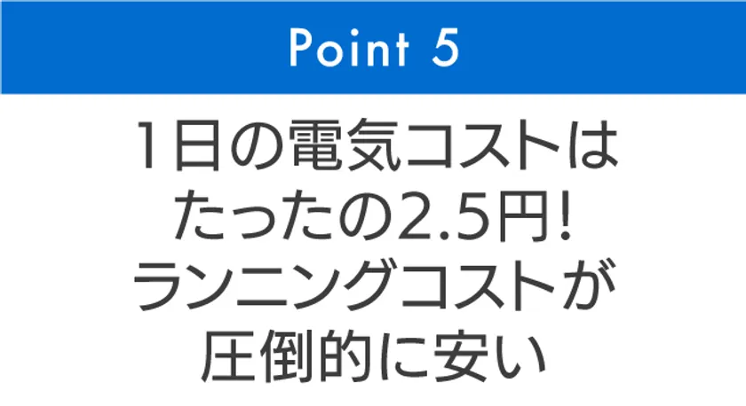 ■Point 5 1日の電気コストはたったの2.5円!ランニングコストが圧倒的に安い