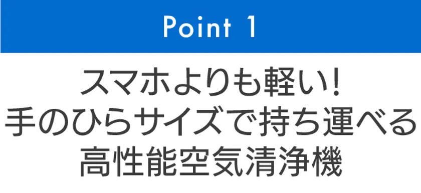 ■Point 1 スマホよりも軽い!手のひらサイズで持ち運べる高性能空気清浄機