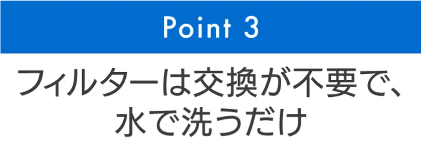 ■Point 3 フィルターは交換が不要で、水で洗うだけ