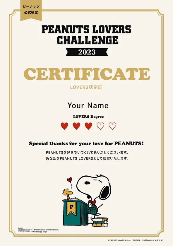 株式会社ソニー・クリエイティブプロダクツ(本社:東京都港区、代表取締役:大竹 健)は、3回目となる日本国内ピーナッツ公式検定「PEANUTS LOVERS CHALLENGE 2023」を、2023年3月3日(金)から2023年3月12日(日)までの期間、オンラインにて実施します。本リリースでは検定受検者のみが手に入れることができる4大特典と、新たに実施する特別企画をご紹介します。