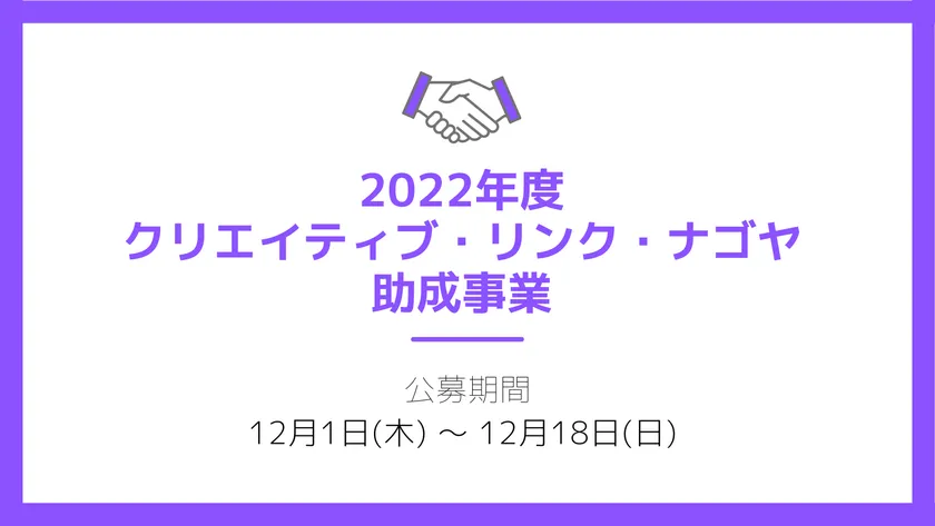 【2022年度 クリエイティブ・リンク・ナゴヤ助成事業 募集】