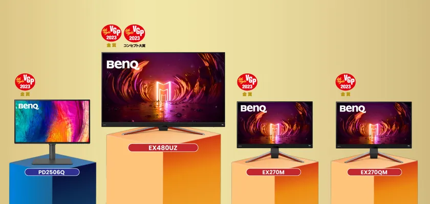 ベンキュージャパン株式会社(本社:東京都千代田区、以下:BenQ)のゲーム体験に究極の没入感を実現するMOBIUZシリーズのゲーミングモニター『EX270M』『EX270QM』『EX480UZ』と「AQCOLOR(TM)」シリーズのPCモニター『PD2506Q』の 4製品、およびLED モバイルプロジェクター『GV11』『GV30』『GS50』と4K 4LEDゲーミングプロジェクター『X3000i』の4製品が、株式会社音元出版(所在地:東京都千代田区、代表取締役:風間 雄介)が主催する国内最大級のオーディオビジュアルアワード「VGP2023」にて、金賞を受賞しました。『EX480UZ』はコンセプト大賞とのダブル受賞、『GV11』はAndroid TV ドングルを同梱した、角度調整機能を持つポータブルプロジェクターとして企画賞とのダブル受賞となりました。また、ゲーミングプロジェクター『TK700STi』も受賞しました。
