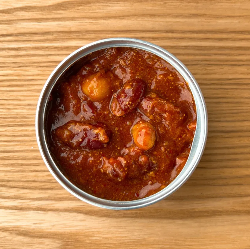 国産の鶏肉と、チリコンカン定番のひよこ豆・レッドキドニー(赤いんげん豆)をトマトペーストで煮込み、そこに明太子と、明太子を漬け込んだ後の旨味がつまった調味液を加えています。明太子だけでなく、調味液を一緒に加えることで、一般的なチリコンカンとはひと味違う、ピリ辛な味わいに仕上がっています。