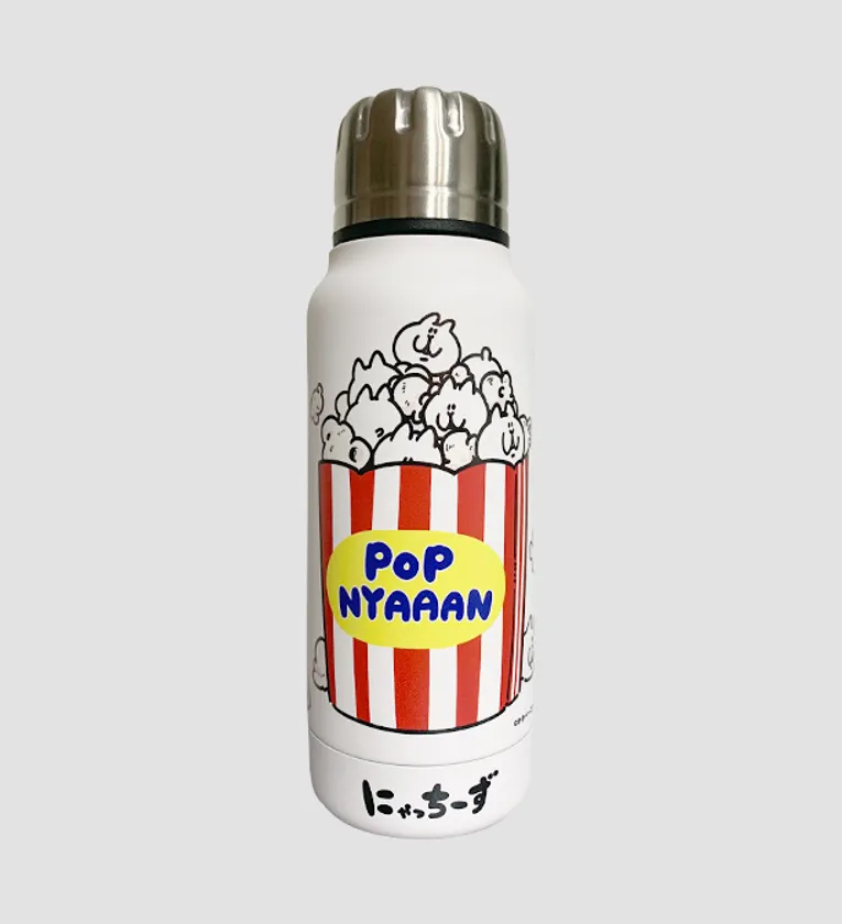今回のボトルデザインは、小さいこねこ達が、ポップコーンに紛れて遊んでいる、ユーモアいっぱいのデザインです。ポップな色でいつもの日常にちょこっとした元気を!のメッセージが込められています。